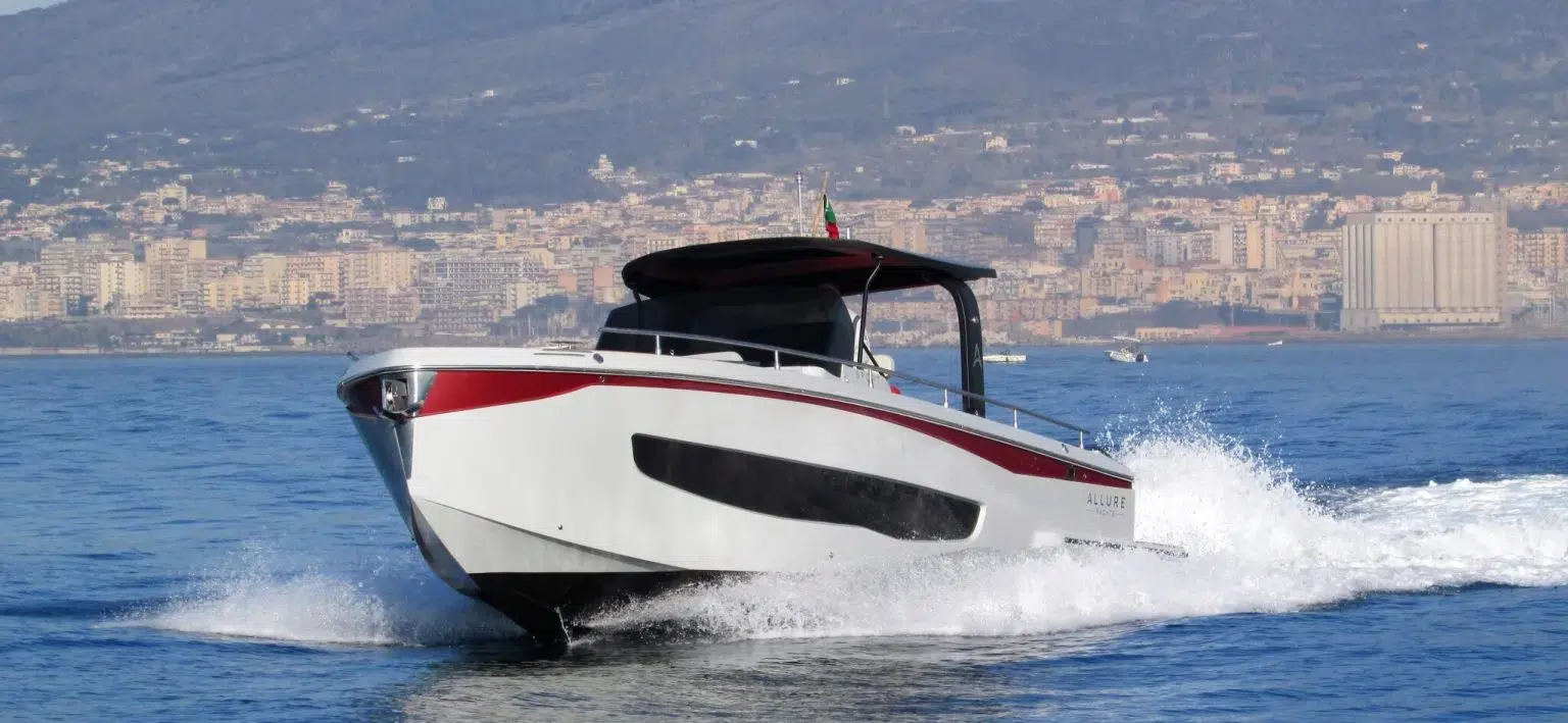 Stiamo navigando nel bellissimo Golfo di Napoli in una giornata di onde lunghe, non molto alte ma piuttosto insidiose, la classica onda che ti fa schiantare in mare, ma non oggi. Perché il lavoro dello scafo è impeccabile: stiamo parlando di uno scafo a V profonda che, come ho detto, tiene il mare in modo assolutamente brillante senza far salire a bordo nemmeno uno spruzzo d’acqua. Raggiungiamo i 22 nodi e, a circa 3.800 giri, stiamo consumando circa 96 l/h; nonostante ciò, due persone potrebbero sedersi comodamente a prua e chiacchierare senza che l’acqua le tocchi.