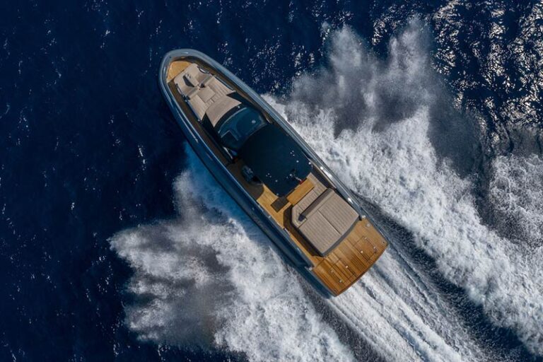 Nonostante la sua lunghezza di 12 metri, la barca mantiene la sua barca parallela alla superficie dell’acqua e un assetto che, anche a 2.500 giri/min e intorno ai 24 nodi, è assolutamente stabile.