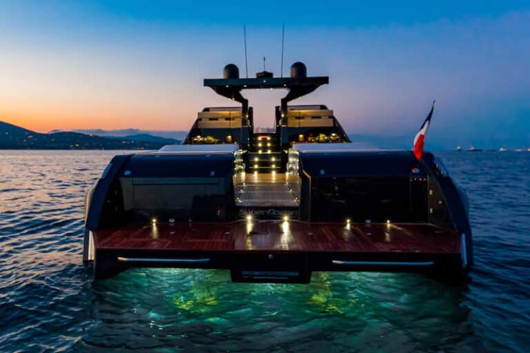 Gli enormi spazi sul ponte offrono agli ospiti molteplici soluzioni per godersi la barca: i prendisole, le zone pranzo e le piattaforme da bagno a poppa (con scaletta da bagno integrata o passerella ad azionamento idraulico) sono tutti progettati per soddisfare le esigenze dell’elevato numero di passeggeri – 30 – che la barca può ospitare. Inoltre, il cantiere offre al cliente la possibilità di scegliere i materiali, le finiture, gli optional e i layout che preferisce per soddisfare al meglio i suoi gusti ed esigenze. Infatti, secondo Scanner ” non esiste la barca perfetta. Esiste una barca ideale per ogni singola persona che ne desidera una”.