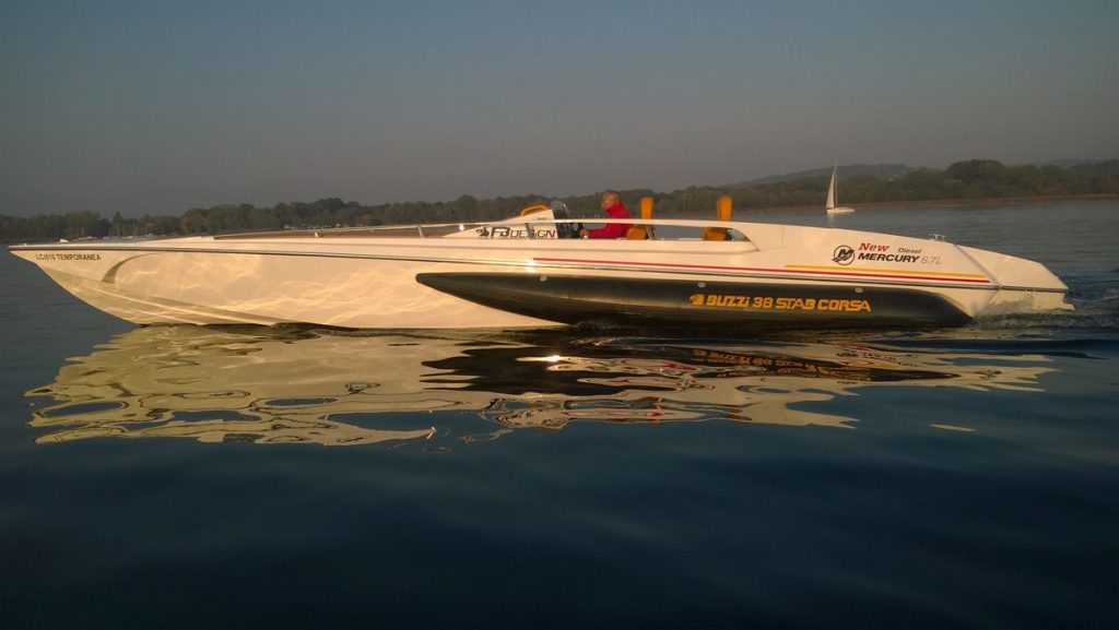 Mentre la prima volta che eravamo saliti a bordo del Buzzi racer – al Salone Nautico Internazionale di Genova 2017 – il mare era mosso con onde di 15 cm, durante i Mercury Days, la superficie del Lago Maggiore era più liscia della superficie dell’Autocamionale della Cisa. Come sapete, condizioni così perfette non sono buone per testare le reali prestazioni di un’imbarcazione. Tuttavia, è stata un’occasione perfetta per noi per sparare questo missile alla sua massima velocità.