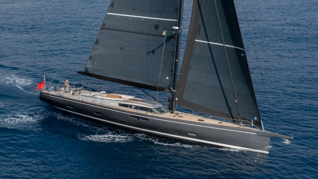 Da lontano, analizzo il profilo di questo superyacht a vela che, oltre a essere inconfondibile, è dotato di una classe infinita. Le linee disegnate da Mario Pedol e Massimo Gino di Nauta Yachts sono minimaliste, pure, belle e permettono al salone semi-rialzato di elevarsi sopra il ponte in modo superlativo, quasi impercettibile.
