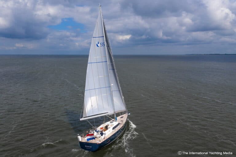 Il Boreas – questo è il nome del Contest 55CS che stiamo testando – misura più di 18 metri (compreso il bompresso) e pesa 25 tonnellate. Tuttavia, grazie ai propulsori di manovra, mollare gli ormeggi e lasciare il porto è facile.