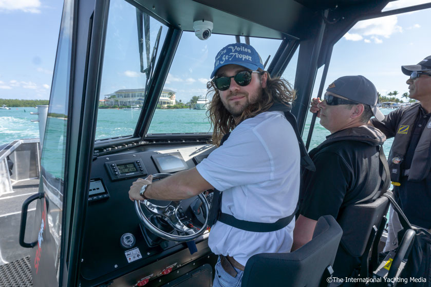 La barca è pronta e, quando avviamo i due motori, noto subito la loro straordinaria silenziosità al minimo dei giri. Molliamo gli ormeggi e lasciamo la banchina sovraffollata del Boat Show. A bordo ci sono quattro passeggeri.
