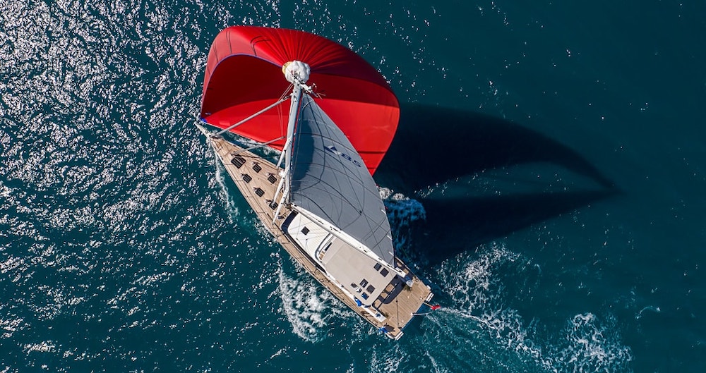 L’ammiraglia si comporta piuttosto bene con queste condizioni di vento. Alessio mi sorride e colgo l’occasione per bombardarlo di domande. Mi dice che all’armatore piace molto navigare e che, con un vento reale di 5-6 nodi, la barca può navigare alla velocità del vento. E, in effetti, anche se non stiamo usando alcun gennaker o drifter, lo yacht sta correndo a più di 7 nodi.