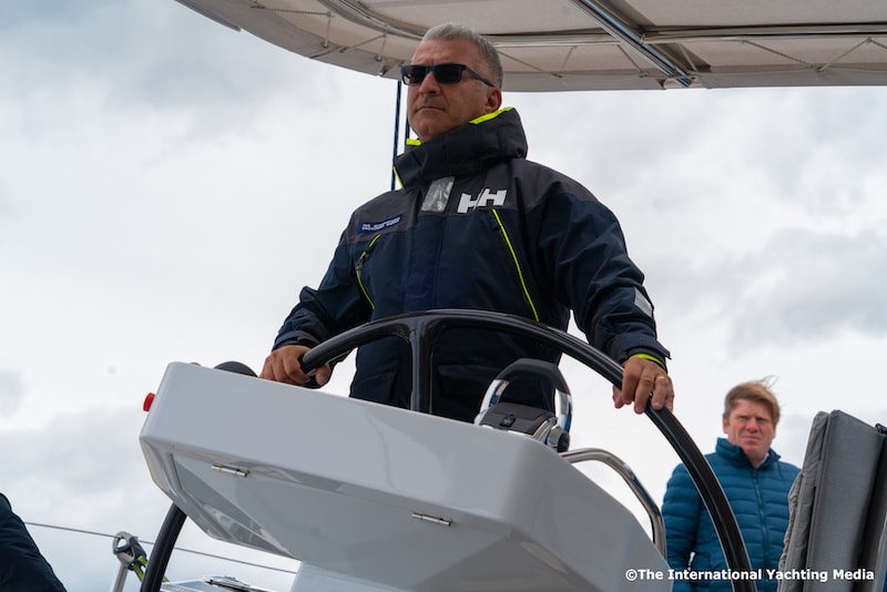 Sì, lo so, sto testando un blue water cruiser e non dovrei timonare come se fossi su un racer, ma mi sto divertendo troppo e non riesco a smettere.