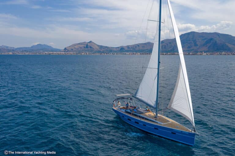 Nel Golfo di Palermo, un vento reale di 10/12 nodi e un mare leggermente mosso ci offrono le condizioni ideali per testare questa barca. Svolgo, da solo e manualmente, la randa e il genoa al 105% e, in meno di 2 minuti, siamo pronti a navigare.