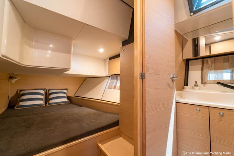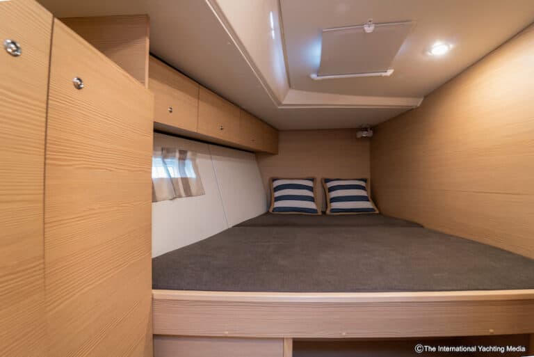 I letti sono grandi, più che sufficienti per due persone. Anche la cabina equipaggio è dotata di toilette privata ed è accessibile dal boccaporto di prua.