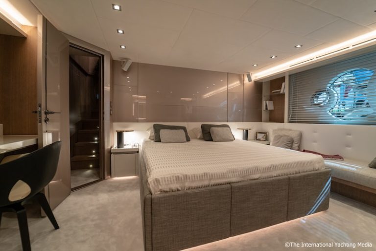 Mi piace molto l’idea di avere una zona notte completamente riservata all’armatore a poppa. In breve, è una grande suite con accesso diretto al salone interno, al salone del pozzetto e, quindi, alla zona spiaggia.