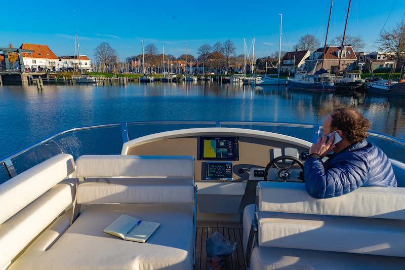 Governamo molto facilmente, lo yacht è dotato di un joystick e si muove senza difficoltà. Marcel chiama la stazione di chiusa per informarli del nostro arrivo; il meccanismo ci porterà al livello dell’IJsselmeer, l’enorme lago artificiale creato nel 1932 con la costruzione della diga settentrionale (Afsluitdijk). Con una profondità media di soli 5 metri, questo “mare interno” genera onde corte e profonde che offrono un vero banco di prova per gli scafi.